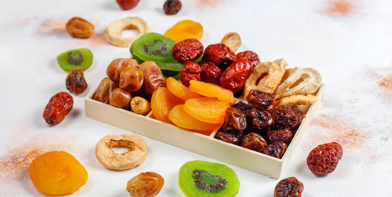 Carefully preserved dried fruits, maintaining taste and texture for snacking or cooking